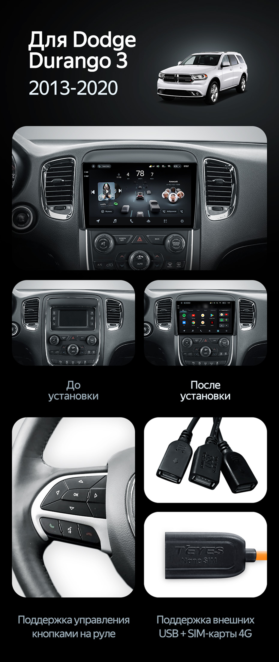 Штатная магнитола Teyes CC3 2K 360 6/128 Dodge Durango 3 (2013-2020) - купить всего за 57 500 руб. в интернет-магазине в Брянске Teyes.com.ru. ✓ Самый лучший выбор мультимедиа ✓ Лучшая замена штатному ГУ ✓ Тел. +7 (800) 775-31-74