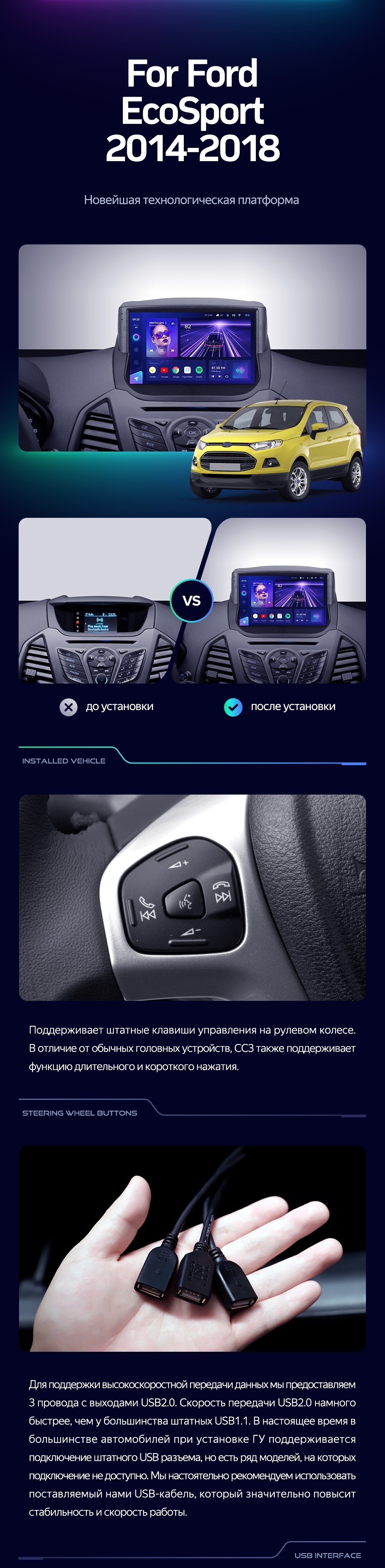 Штатная магнитола Teyes CC3 4/32 Ford EcoSport (2014-2018) F1 - купить всего за 33 530 руб. в интернет-магазине в Брянске Teyes.com.ru. ✓ Самый лучший выбор мультимедиа ✓ Лучшая замена штатному ГУ ✓ Тел. +7 (800) 775-31-74