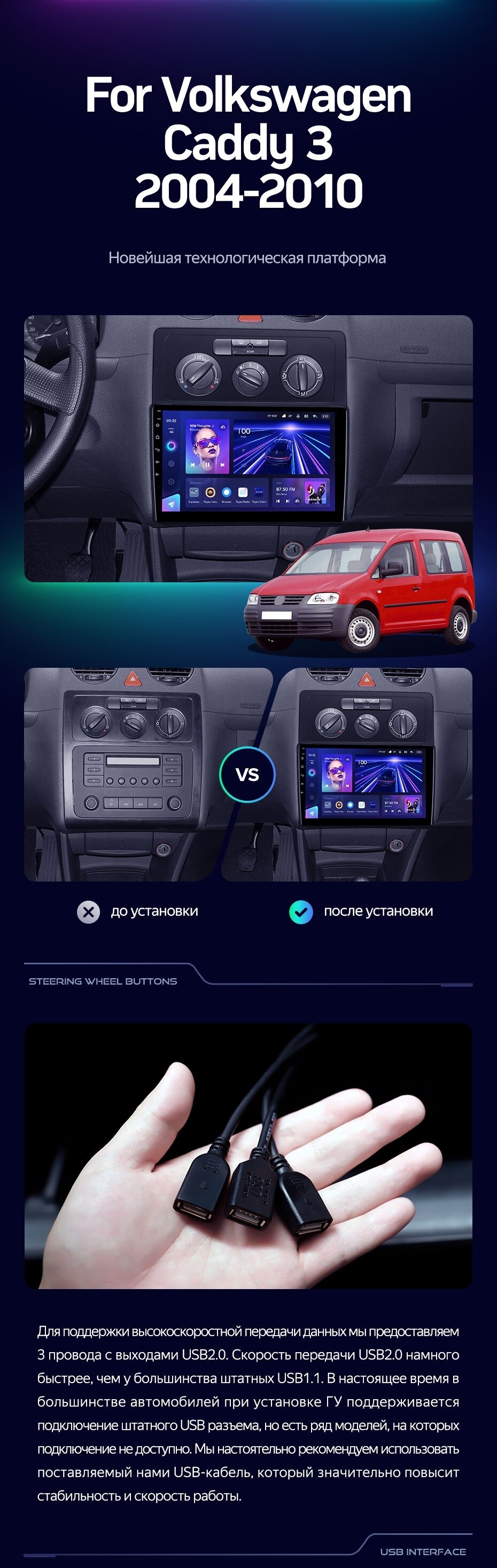 Штатная магнитола Teyes CC3 4/32 Volkswagen Caddy 2K (2004-2010) - купить всего за 34 300 руб. в интернет-магазине в Брянске Teyes.com.ru. ✓ Самый лучший выбор мультимедиа ✓ Лучшая замена штатному ГУ ✓ Тел. +7 (800) 775-31-74