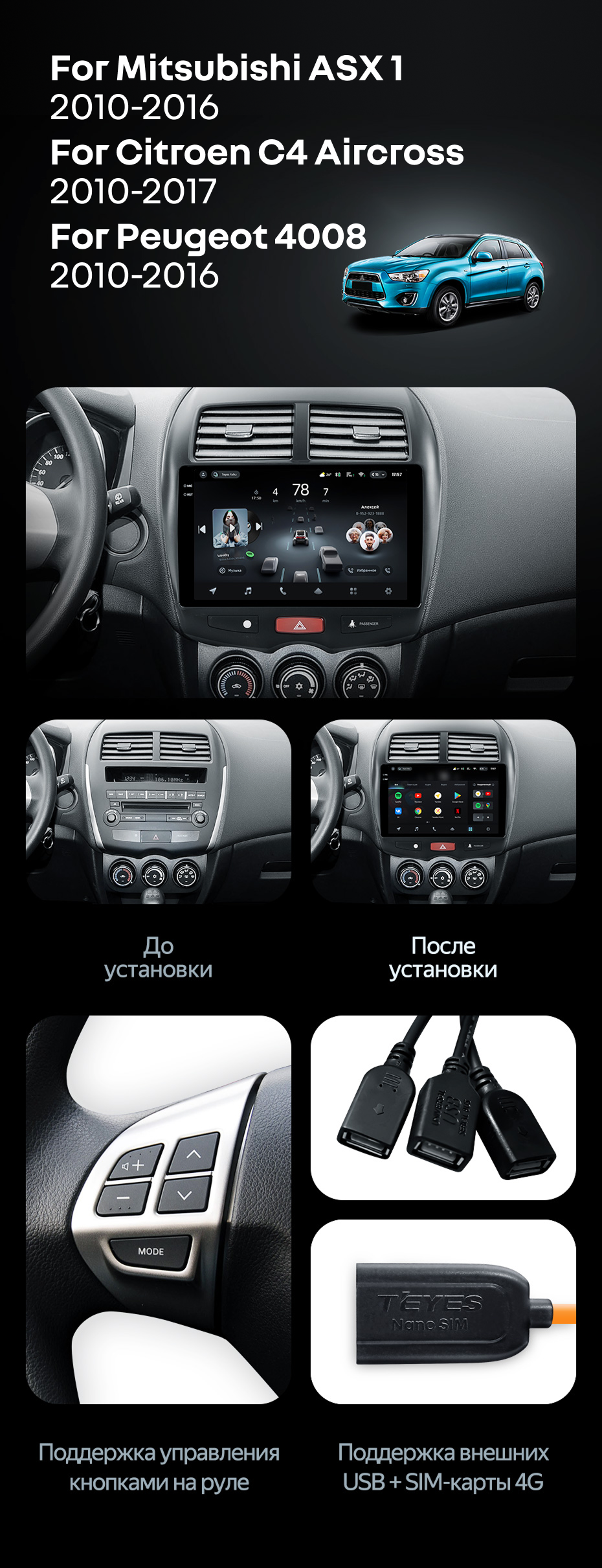 Штатная магнитола Teyes CC3L 4/64 Citroen C4 Aircross (2010-2017) Тип-B - купить всего за 31 100 руб. в интернет-магазине в Брянске Teyes.com.ru. ✓ Самый лучший выбор мультимедиа ✓ Лучшая замена штатному ГУ ✓ Тел. +7 (800) 775-31-74