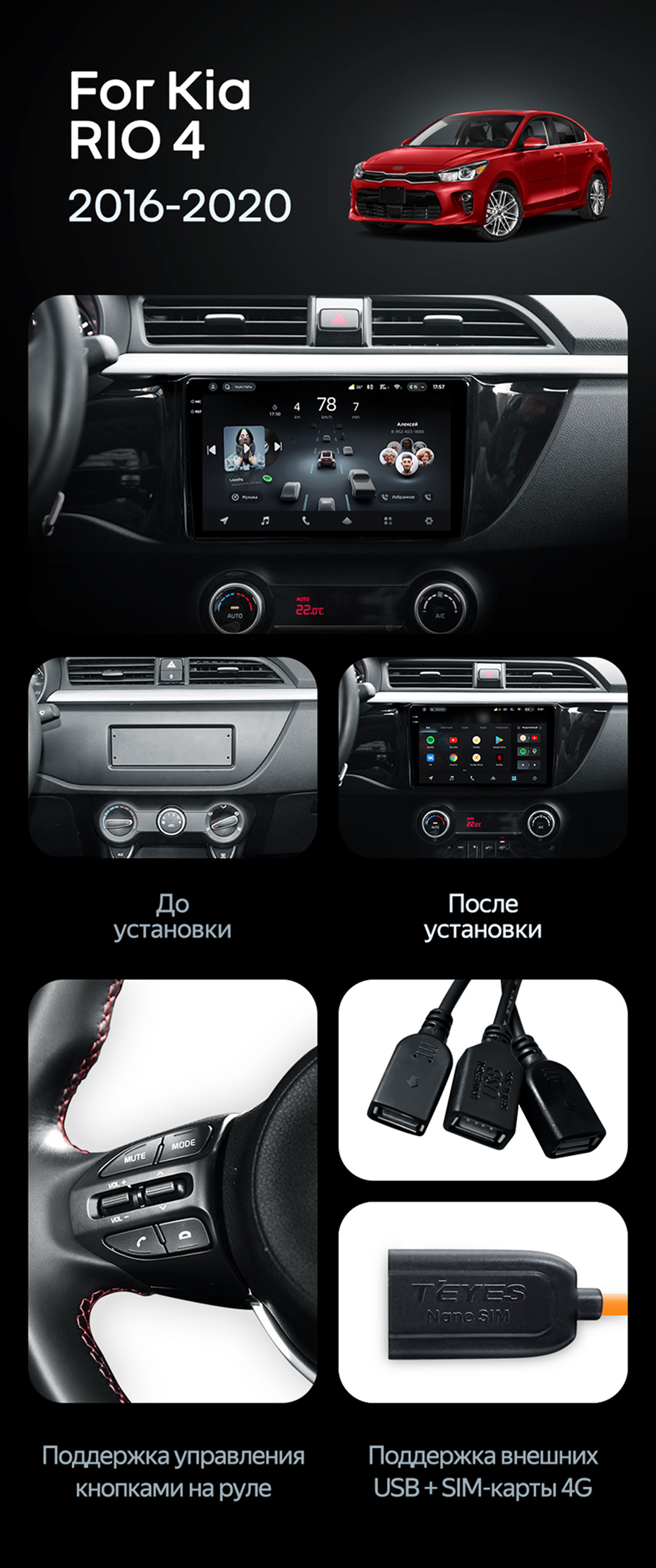 Штатная магнитола Teyes CC4 6/64 Kia Rio 4 (2016-2020) Тип-B - купить всего за 43 450 руб. в интернет-магазине в Брянске Teyes.com.ru. ✓ Самый лучший выбор мультимедиа ✓ Лучшая замена штатному ГУ ✓ Тел. +7 (800) 775-31-74