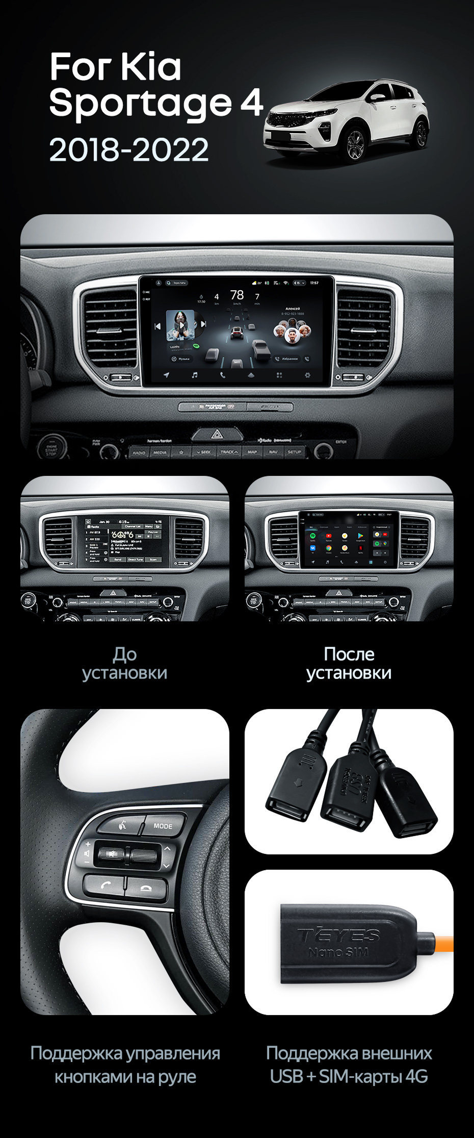 Штатная магнитола Teyes CC4 6/64 Kia Sportage 4 QL (2018-2022) Тип-B - купить всего за 45 390 руб. в интернет-магазине в Брянске Teyes.com.ru. ✓ Самый лучший выбор мультимедиа ✓ Лучшая замена штатному ГУ ✓ Тел. +7 (800) 775-31-74
