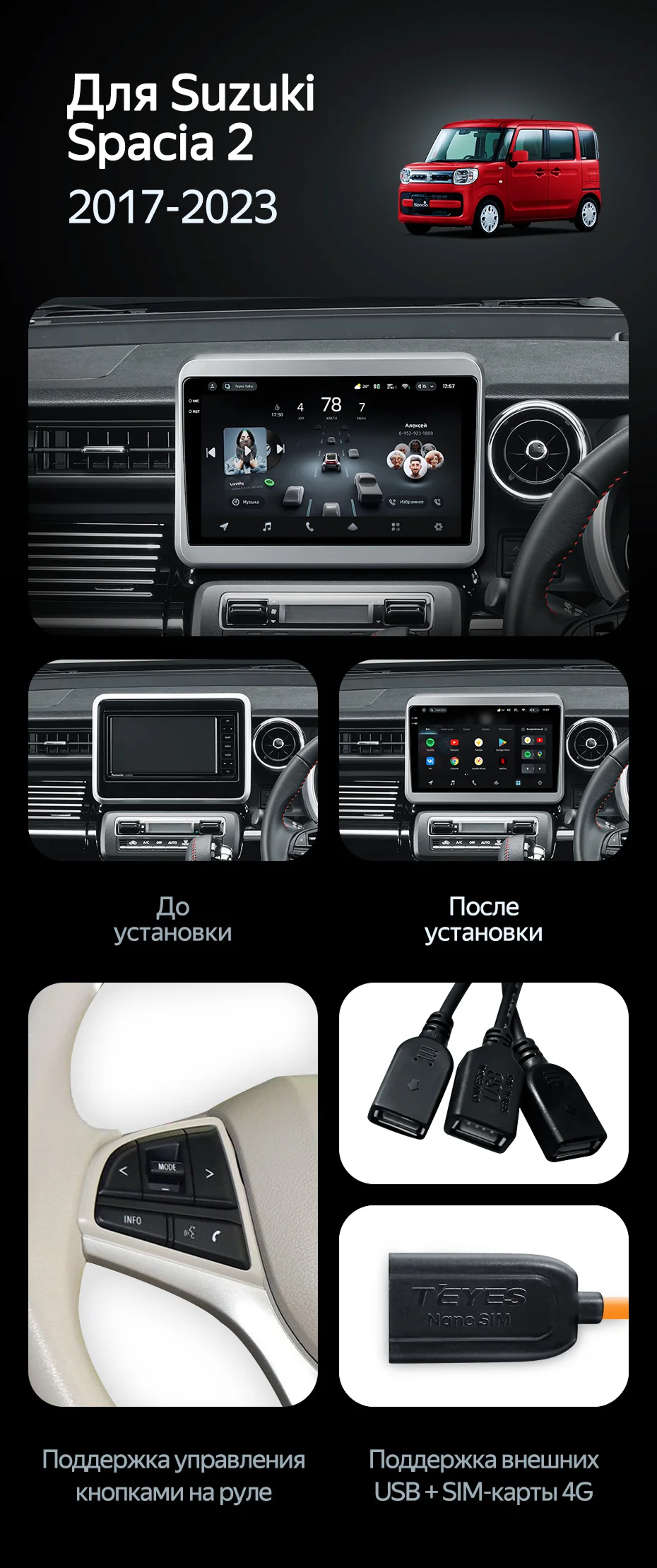 Штатная магнитола Teyes CC4 6/64 Suzuki Spacia 2 (2017-2023) - купить всего за 43 700 руб. в интернет-магазине в Брянске Teyes.com.ru. ✓ Самый лучший выбор мультимедиа ✓ Лучшая замена штатному ГУ ✓ Тел. +7 (800) 775-31-74