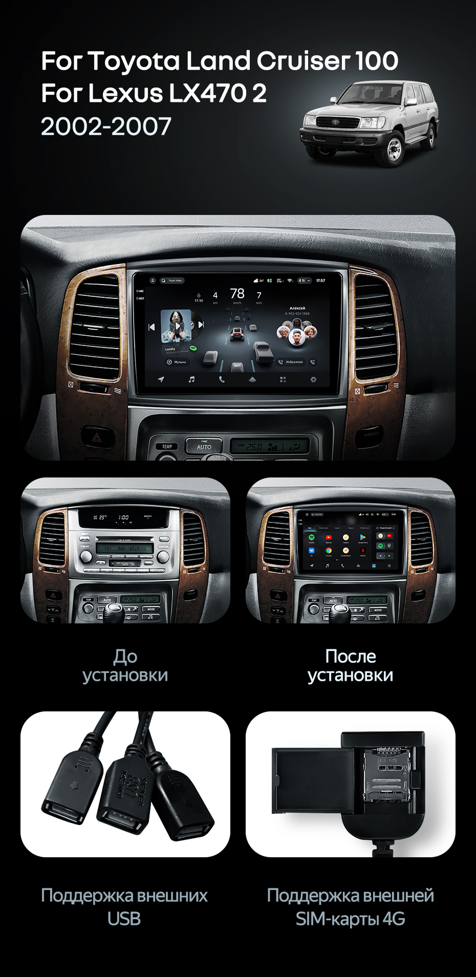 Штатная магнитола Teyes CC4 8/128 Lexus LX470 J100 2 (2002-2007) Тип-C - купить всего за 55 500 руб. в интернет-магазине в Брянске Teyes.com.ru. ✓ Самый лучший выбор мультимедиа ✓ Лучшая замена штатному ГУ ✓ Тел. +7 (800) 775-31-74