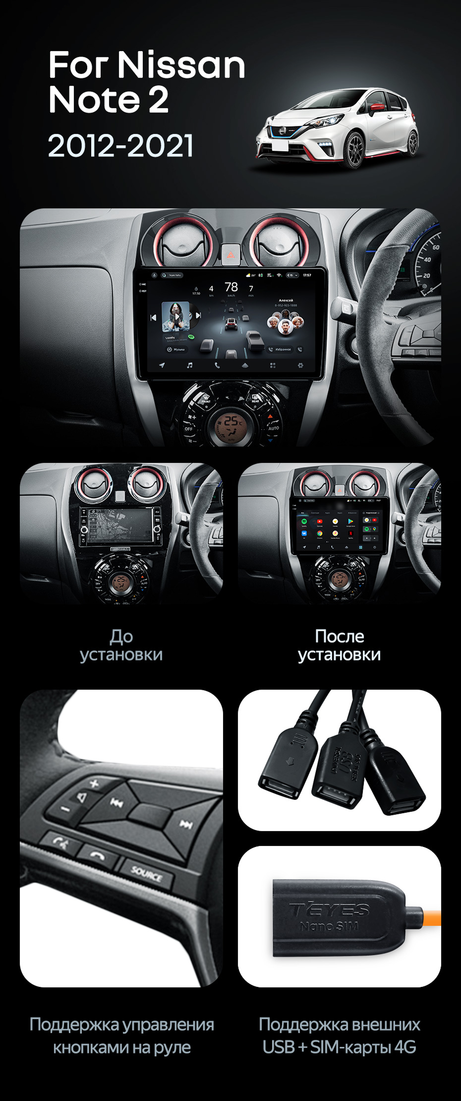 Штатная магнитола Teyes CC4 Pro 12/256 Nissan Note 2 E12 (2012-2021) - купить всего за 69 240 руб. в интернет-магазине в Брянске Teyes.com.ru. ✓ Самый лучший выбор мультимедиа ✓ Лучшая замена штатному ГУ ✓ Тел. +7 (800) 775-31-74