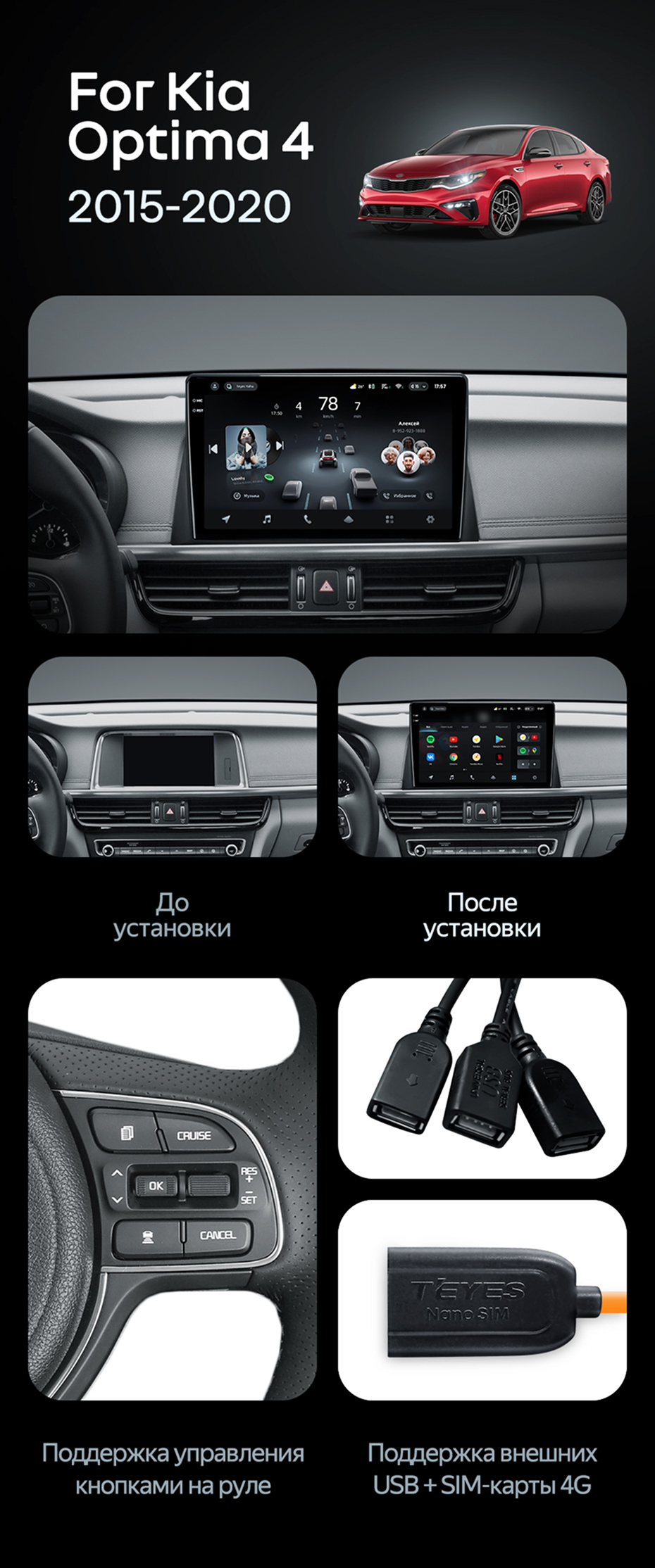 Штатная магнитола Teyes CC4 Pro 8/128 Kia Optima 4 JF (2015-2020) Тип-A - купить всего за 58 180 руб. в интернет-магазине в Брянске Teyes.com.ru. ✓ Самый лучший выбор мультимедиа ✓ Лучшая замена штатному ГУ ✓ Тел. +7 (800) 775-31-74