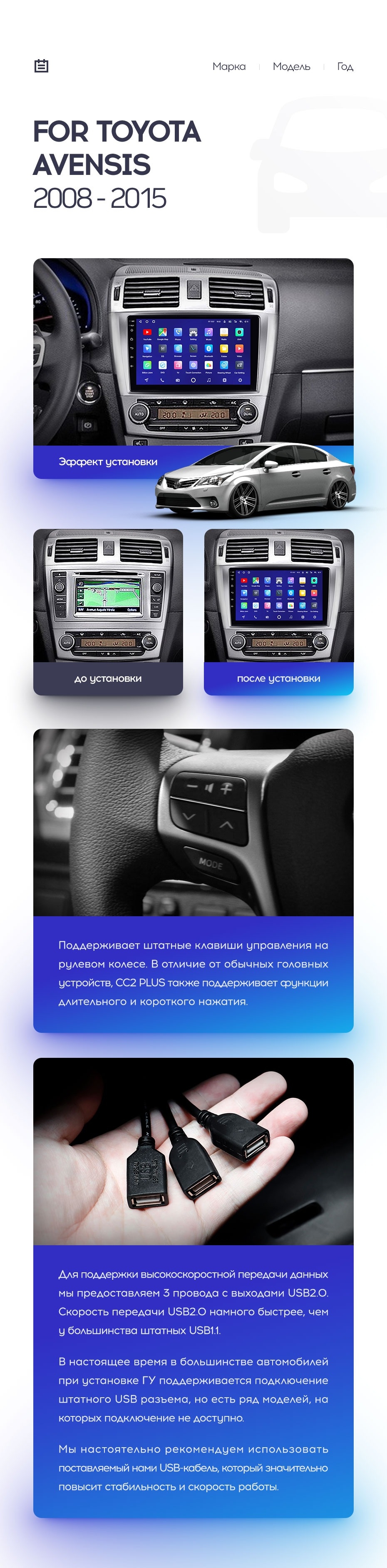 Полный комплект установки магнитолы Teyes с рамкой и проводкой можно выбрать в каталоге штатных магнитол Toyota Avensis 3 (2008-2015).