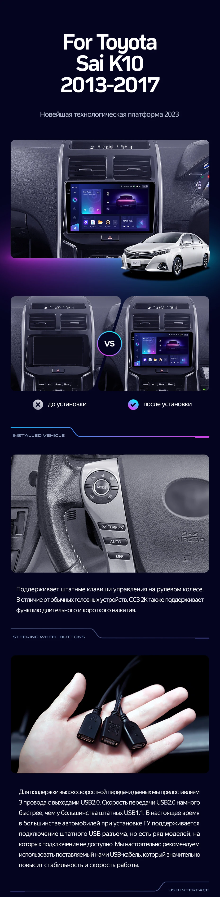 Переходная рамка Toyota Sai K10 (2013-2017) (9") - купить всего за 7 400 руб. в интернет-магазине в Брянске Teyes.com.ru. ✓ Самый лучший выбор мультимедиа ✓ Лучшая замена штатному ГУ ✓ Тел. +7 (800) 775-31-74